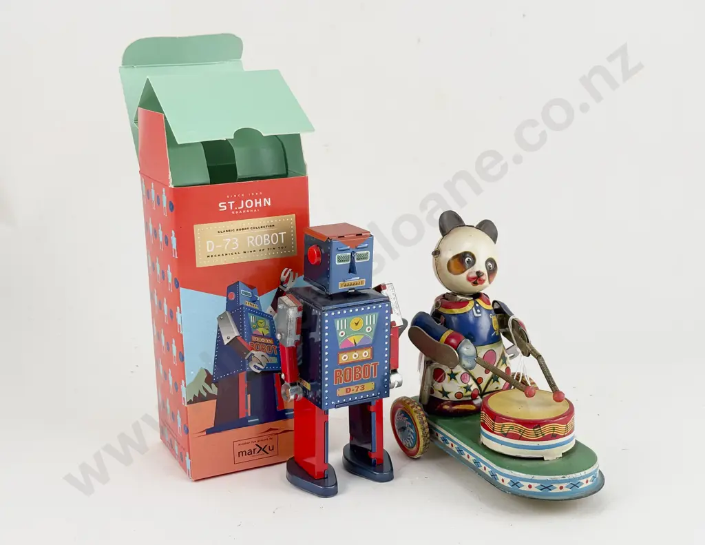 Boxed St John Shanghai Tinplate Robot D-73 and China MS 565 Drum Playing Panda