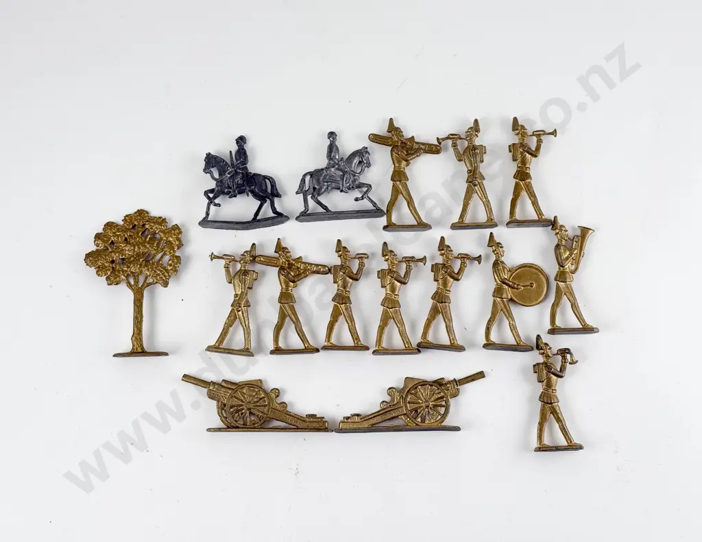 WWI Period German Semi-Flat Soldier Band Painted Gold (14) and two other pieces